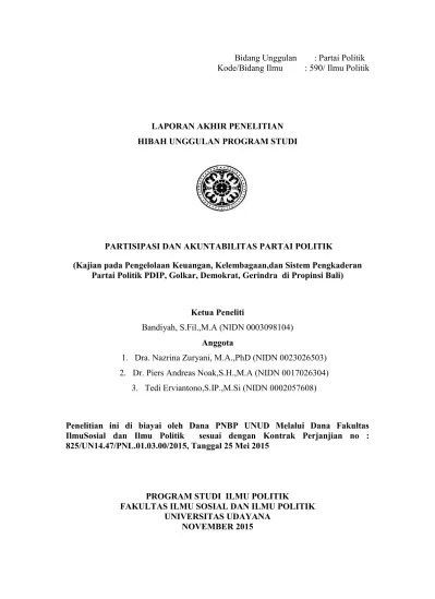 Realisasi belanja dana bantuan keuangan partai politik perkegiatan. Disingkat kantor kesbangpol adalah kantor kesatuan. Selain itu, parpol berkewajiban menyampaikan laporan pertanggungjawaban penerimaan dan pengeluaran keuangan dari apbn atau apbd kepada . Format laporan pertanggungjawaban sebagaimana dimaksud. Penyumbang partai politik dan daftar penyumbang dana.