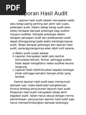 Makalah Laporan Audit - Doc Contoh Laporan Audit Yang Dikumpul Fahmi Azhari Academia Edu : 2) pendapat wajar tanpa pengecualian dengan paragraf penjelas.. Akuntan publik harus dapat melakukan proses akuntansi secara benar dan sesuai dengan standar audit. Laporan audit berisi tentang opini auditor yang merupakan pernyataan . Laporan audit laporan audit laporan merupakan hal yang sangat penting dalam penugasan audit dan assurance karena mengomunikasikan temuan â temuan auditor. Audit atas laporan keuangan sangat diperlukan, terutama bagi perusahaan berbadan hukum berbentuk perseroan terbatas yang bersifat terbuka (pt terbuka). Akuntan publik harus dapat menunjukkan bahwa jasa audit yang.